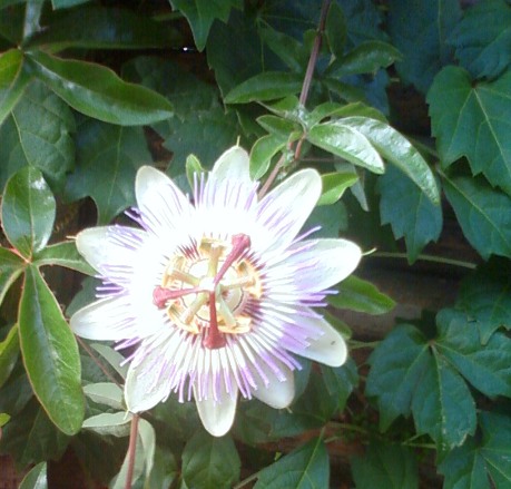 そんな日にちょうどタイミングよく、うちの実家のお庭にあるトケイソウ(時計草)が、見事な花を咲かせました♪