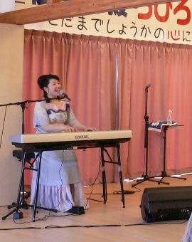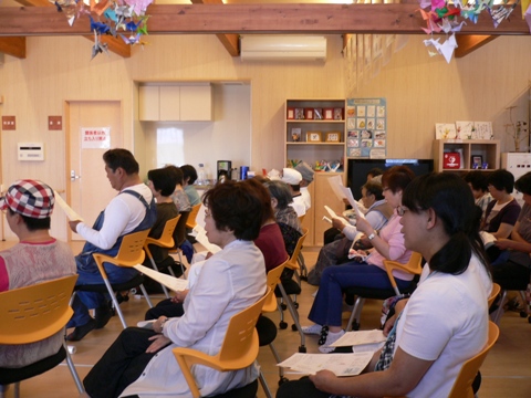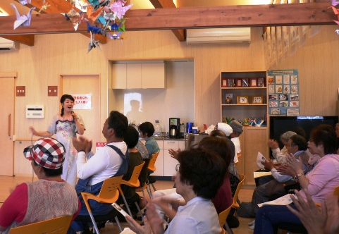 「ふるさと」の大合唱。そして「愛燦燦」の弾き語りでは自然に皆さんも一緒に歌ってくださいました。