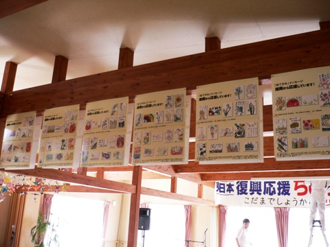 先日のおだがいさまセンターは500世帯800人の場所でしたので、まだイラストはお預かりしたままです。25日に伺う喜久田町もしくは二本松市のどちらからの仮設住宅でお渡しできるかと思っています♪