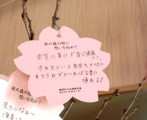 会場に飾られていた仮設住宅の方々のメッセージ。涙が滲みます。