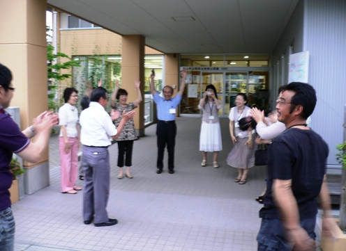 帰る時に公民館の職員の方々と宗方さんと一緒に。
