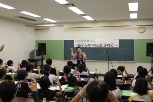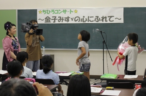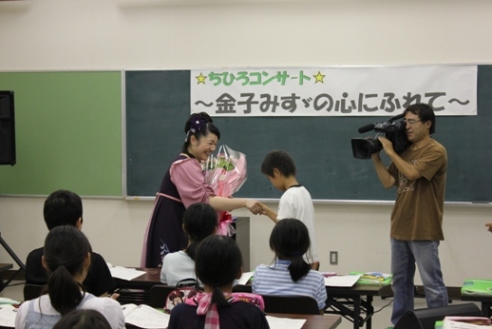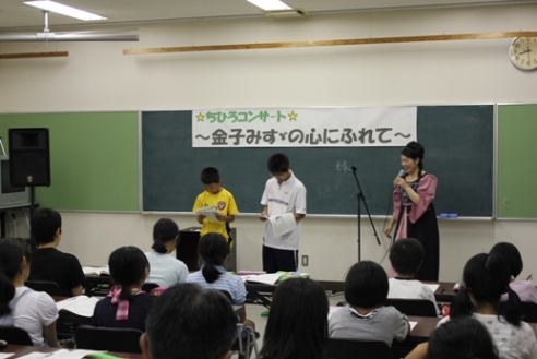 3日のコンサートは、美祢市教育委員会主催の「美祢子ども交流塾」での1時間コンサート。これは、美祢市内の全29の小・中学校から1人の代表者らが集う、将来を支える担い手を育成するプロジェクト。このカリキュラムの中で、金子みすゞさんの心を学ぶ時間として呼んでいただけたことは、とても嬉しいご縁でした。