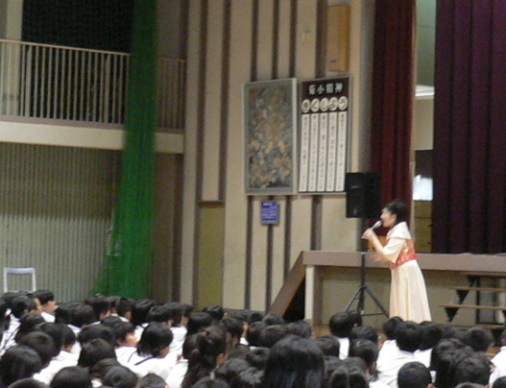 今日は、山口県周南市の菊川小学校でコンサートをさせていただきました。体育館の前半分は3年生以上の児童たち。そして後ろには参観日で来られていた保護者の方々と地域の方々。会場には椅子も追加し、満員御礼の立ち見もありの客席となりました♪