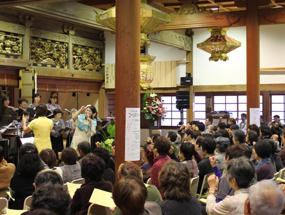 はじめは音楽法要から。本堂いっぱいに歌声が響きます。