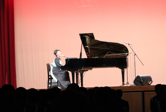 北有馬中学校にはピアノがないので、すぐ近くの文化センターでコンサート。