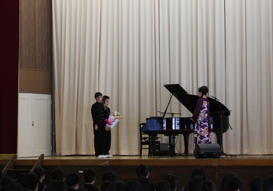 「みんなを好きに」も演奏。生徒代表のお礼の言葉の中でこの詩がとても印象に残ったことを語ってくれました。