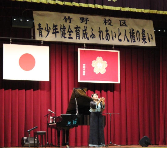 17日は、福岡県久留米市の竹野小学校で開催された、竹野校区の人権のつどいにて、記念講演会としてコンサートをさせていただきました。