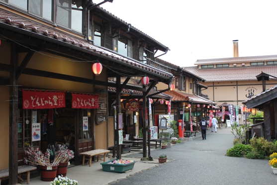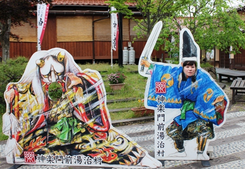 敬覚寺様と役員の皆さまに見送っていただいて、このあとちょっとだけ「神楽門前湯治村」へ行きました。神楽の盛んな地域ならではの施設。