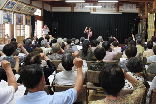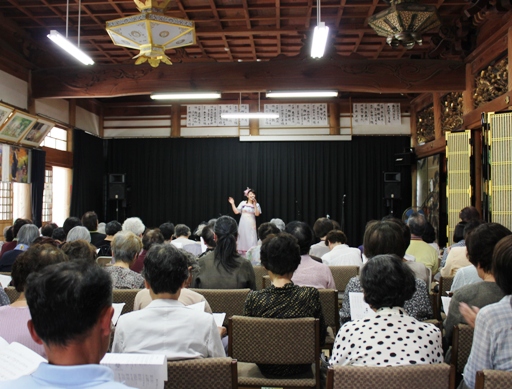 みすゞさんの歌の合間には、歎異抄の歌から「ただ念仏して」も歌いました。実は光善寺様の坊守様が、この歌をつくるきっかけを与えてくださった、山口市の教證寺様の前ご住職様の妹様にあたられるので、この歌を歌う気持ちもまたひとしおでした。