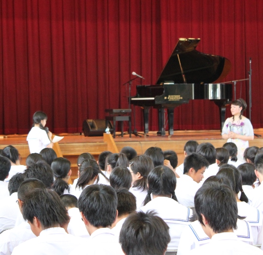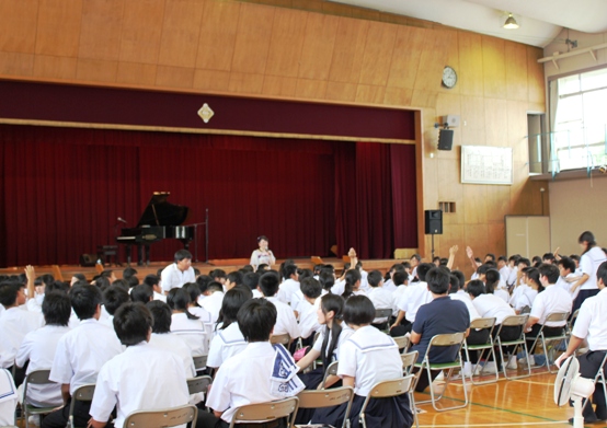生徒さんから、先生も予期せぬアンコールがかかり、アベマリアを歌いました。そして、終演時には生徒代表の女の子から御礼の言葉をいただき、「みんなを好きに」がとても印象に残ったと。そして、これからのいろんな出会いを大切にして、そして挫折もあるかもしれないけれど、そんな時は今日言われたことを思い出し、頑張っていこうと思いますと。本当に嬉しい言葉でした。