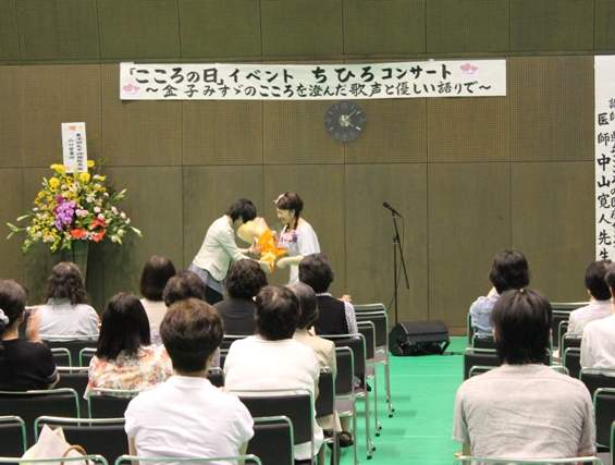 こころの日ということで、いろいろと心に抱えていらっしゃる方も聴いてくださったと思います。涙ぐみながら握手をした方も・・・。みすゞさんの心で、どうか心が和らぎますように・・・。