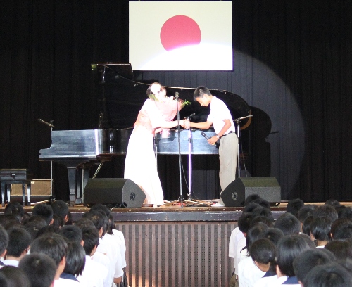 今回のご縁は、以前高校の文化連盟の全国研修大会が下関であった時に、歌わせていただいたことから、その時来ておられた校長先生や担当の先生から、ぜひ学校で、とお話をいただいたのでした。本当に一つひとつのご縁が大切です。