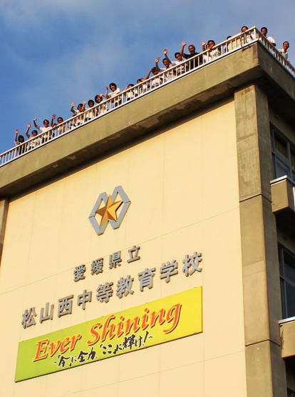 そして、帰りには、校舎の屋上から声が。見上げると・・・