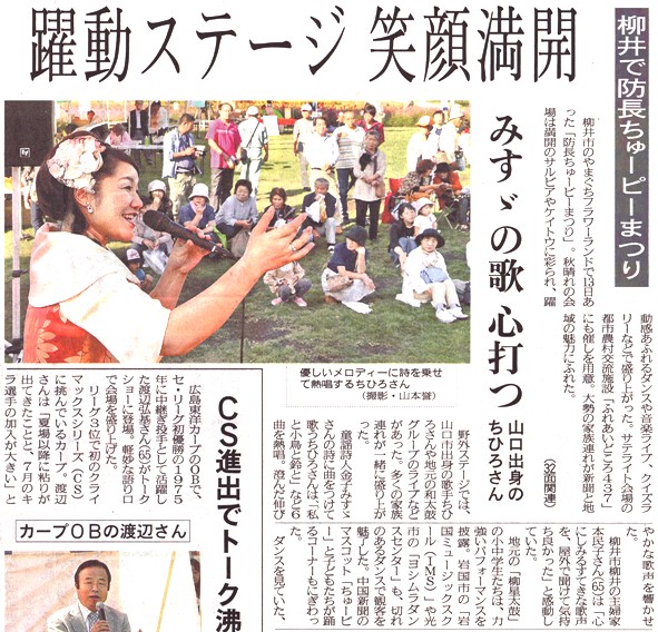 昨日13日は、山口県柳井市の「やまぐちフラワーランド」にて開催された「防長ちゅーピーまつり」で、30分歌わせていただきました。