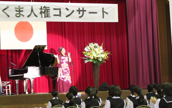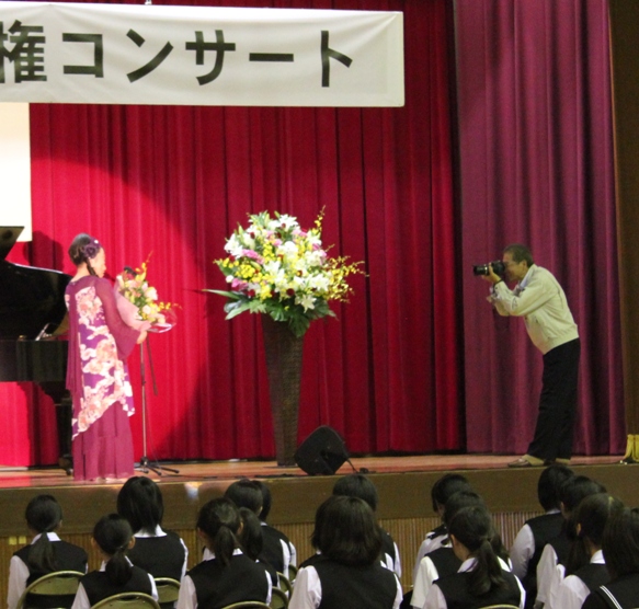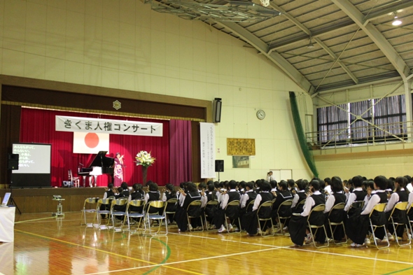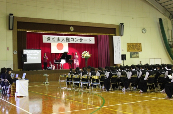 昨日17日は、愛媛県今治市菊間町の菊間中学校体育館にて、人権コンサートをさせていただきました。