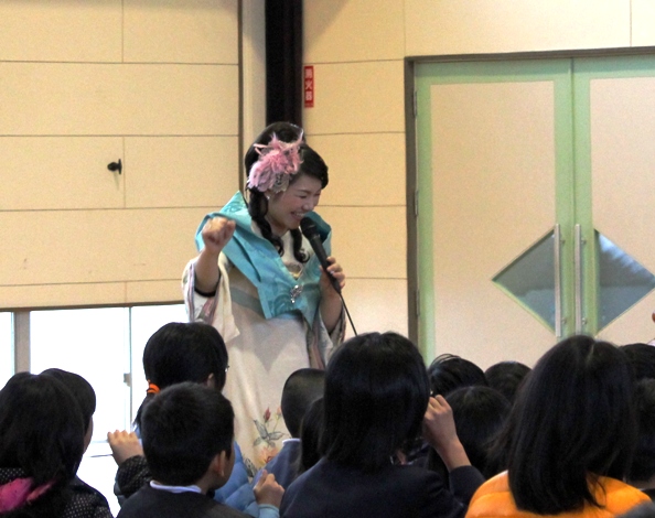 この小学校に入学してくる子ども達の中に、美祢幼稚園卒園の子ども達もいるのですが、その幼稚園では、私が歌うみすゞさんの詩をいつも子ども達に伝えてくださっているので、数曲を一緒に歌ってくれる子ども達がいて、とても嬉しかったです。